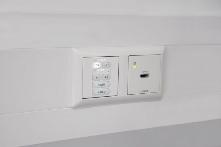 Die gemeinsame Zielsetzung war es, eine einfache sowie drahtlose Zusammenarbeit im Besprechungsraum zu ermöglichen. Um der Erwartungshaltung des Auftraggebers gerecht zu werden durfte Gendo eine einfache Präsentationstechniklösung umsetzen. Die Nutzer können nun selbst entscheiden ob Sie über ein HDMI-Kabel oder doch kabellos mit den mitgebrachen mobilen Endgeräten auf einem 86“ Sony 4K Professional Display präsentieren möchten. Die Steuerung sowie die Quellenauswahl erfolgt per einfachem Tastendruck über das verbaute Extron Tastenbedienfeld.