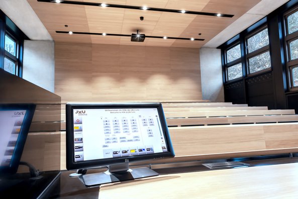 Fazit: der Einsatz von Medientechnik an der JKU überzeugt: Bemerkenswert ist das umgesetzte Gesamtkonzept, das gleichermaßen für den Altbestand wie für das neu errichtete JKU Open Innovation Center gilt. Trotz unterschiedlicher Raumgrößen und Nutzungsszenarien ist die Bedienung der Medientechnik in allen Hörsälen vergleichbar, so dass sich jeder Vortragende auf Anhieb zurechtfindet, wenn er die grundlegenden Bedienschritte erst einmal verinnerlicht hat.