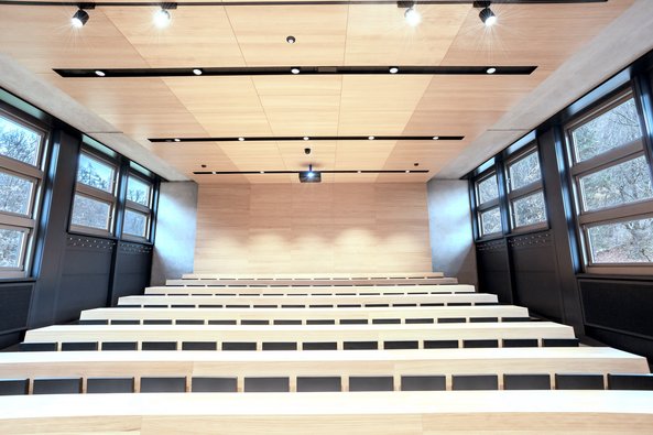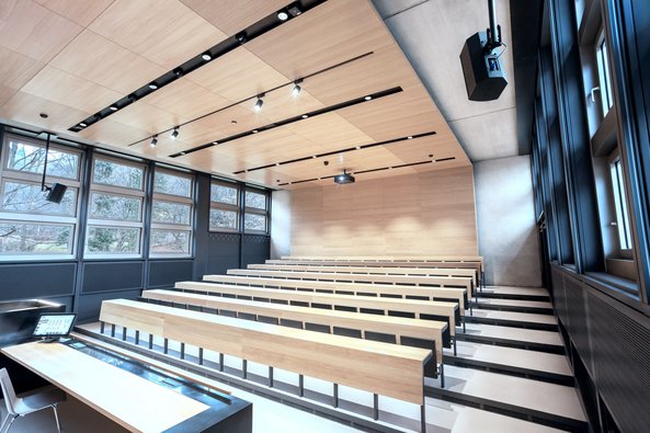 Die Gendo GmbH, AV-Systemintegrator aus Engerwitzdorf, erhielt den Auftrag zur medientechnischen Ausstattung von insgesamt 7 Hörsälen. Im Zuge des Umbaus und der Revitalisierung des Hörsaalgebäudes wurde auch die gesamte Medien- & Präsentationstechnik digitalisiert und in die architektonische Umgebung bestmöglich integriert. In den Hörsälen mit jeweils Platz für bis zu 200 Personen wurden wartungsfreie Panasonic WUXGA Projektoren mit Laser-Lichtquelle, motorisch ausfahrbare Deckeneinbau-Leinwände sowie Beschallungsanlagen für eine hohe Sprachverständlichkeit installiert.